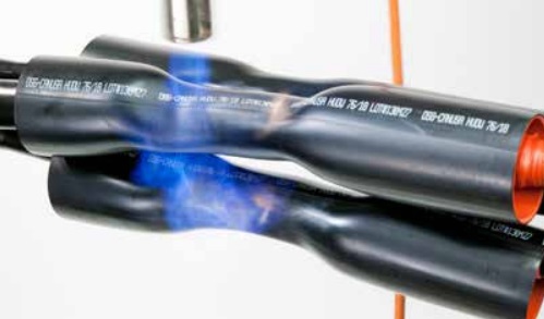 The installation process involves positioning and re-heating the expanded parts, usually with a propane or butane gas torch, until the parts shrink (‘recover’) on to whatever they have been placed (Figure 43). Because a naked flame is involved (or perhaps a powerful hot air gun), an appropriate level of installer skill is required to ensure full recovery using heat shrink torches, avoiding faults such as voids in the interfaces of insulating layers, or burning of the material surface.