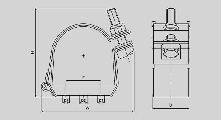 | Emperor Cable Cleat Part Number | Min Dia (mm) | Max Dia (mm) | W (mm) | H (mm) | D (mm) | P (mm) | Cleat Fixing Holes | Weight (g) |